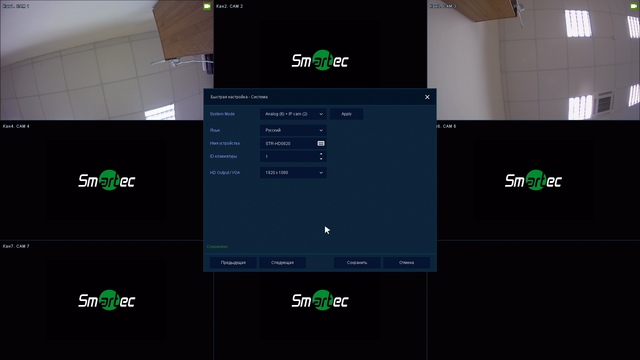 Для тестирования виртуальной матрицы Smartec STNR-6462 дополнительно использовалось следующее оборудование этого же бренда: видеорегистраторы STNR-1661 и STR-HD0820, две IP-камеры (STC-IPM3681/1 и STC-IPM5591/1), HD-TVI камера STC-HDT3584/3 Ultimate и AHD камера KAB21. Все три основных устройства были интегрированы в локальную сеть офиса через отдельный коммутатор. При этом IP-камеры подключались ко встроенному в видеорегистратор STNR-1661 коммутатору с PoE. Заметим, что это только один из вариантов коммутации оборудования. В некоторых ситуациях будет более удобно реализовать отдельную сеть для передачи видеотрафика, поскольку при большом числе камер общий поток может быть значительным, а «наружу» вывести только виртуальную матрицу через ее второй сетевой порт.