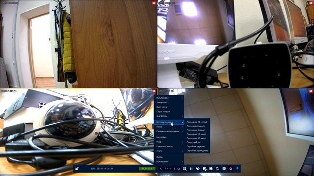 Аналогичные действия, а также несколько дополнительных, можно осуществить и через контекстное меню, которое традиционно вызывается правой кнопкой мышки. В частности здесь можно настроить отображение каналов на втором мониторе, быстро перейти к просмотру записей за недавнее время, просмотреть журнал событий, экспортировать его на внешний накопитель, перейти к настройкам, включить режим Warp.