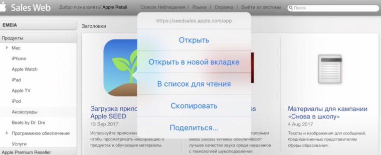 Для загрузки SEED с устройства на iOS нужно сделать долгий тап на иконке приложения и выбрать «Открыть», либо «Открыть в новой вкладке».