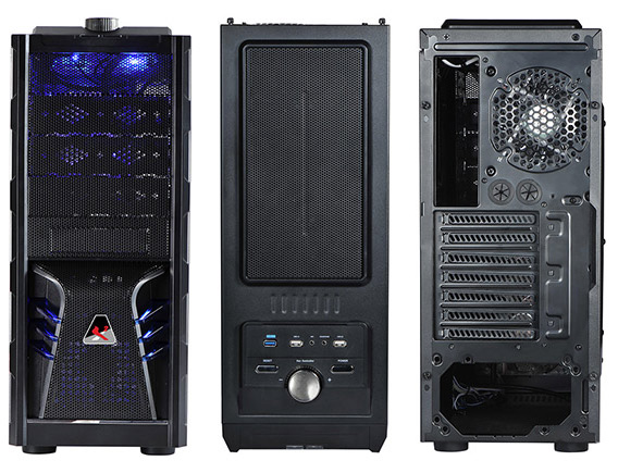 В корпусе есть место для четырех накопителей типоразмера 5,25 дюйма и до пяти накопителей типоразмера 3,5 дюйма, один из которых выходит на переднюю панель.