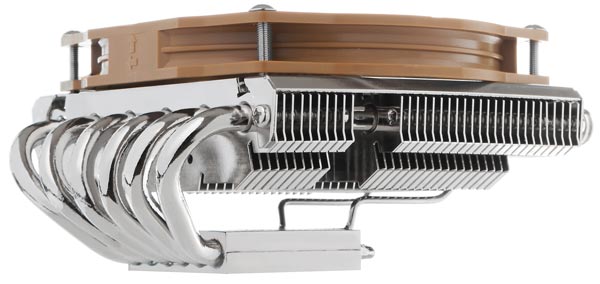 Конструкция процессорного охладителя включает шесть тепловых трубок диаметром 6 мм и никелированный радиатор. Габариты радиатора - 121,1 x 105,47 x 44,15 мм, вентилятора - 108,25 x 101,5 x 14 мм. Масса конструкции в сборе - 360 г. Скорость вращения вентилятора регулируется в диапазоне 900-2500 об/мин ±15%. При этом производительность меняется в пределах 27,3-75,7 м3/ч, а уровень шума - в пределах 22-30 дБА. Возможна замена вентилятора на любой вентилятор, рассчитанный на посадочное место типоразмера 120 мм, включая модель Thermalright TY-140.