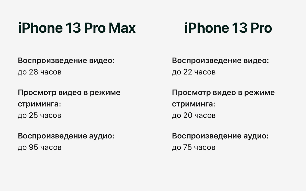 Поэтому, что бы не обещала Apple на своих презентациях, iPhone 13 Pro не просто слегка отстаёт от большого брата. Во времени их работы пропасть.