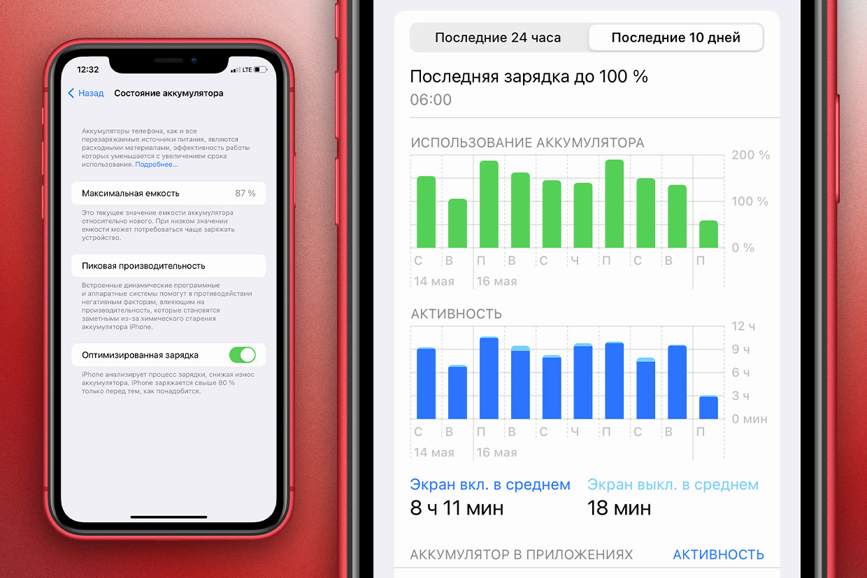 Пример 1. Купил iPhone 11 в январе 2020 года. За 2 года и 5 месяцев ресурс опустился до 87%. Средний расход 1,5 цикла в день при 8 часах 10 минутах экранного времени.