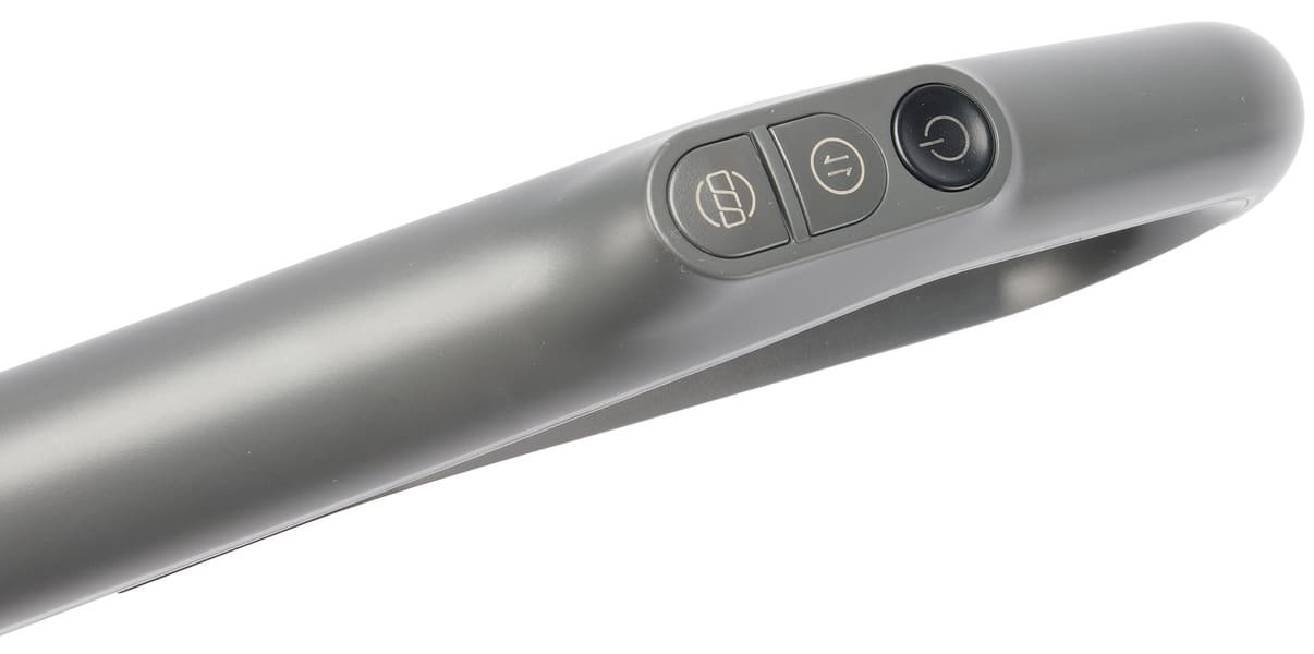 Модель тоже рассчитана на влажную и сухую уборку — и тоже с акцентом именно на влажную, эффективность которой мы подтвердили в ходе тестирования. В отличие от предыдущей модели с автоматической и ручной подачей воды здесь она только ручная, при помощи кнопка на ручке. Это дает контроль над увлажнением поверхности и помогает тщательнее промывать загрязненные участки, но требует постоянного внимания и действия.