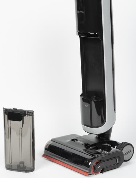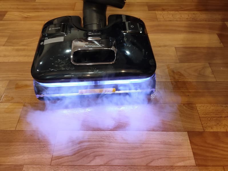 В ходе тестирования пылесос продемонстрировал высокую эффективность влажной уборки: система автоматического увлажнения роторного валика и возможность ручного распыления воды обеспечивают равномерное очищение полов, а хорошая мощность всасывания — их быстрое высыхание. Предусмотрен автоматический режим, в котором пылесос сам регулирует мощность в зависимости от уровня загрязнения, довольно точно прогнозируя оставшееся время работы (31—37 минут в разных режимах). При реальной эксплуатации время работы составило 35—47 минут. Интересно, что бак для чистой воды размещается не на корпусе, а на моторизованной насадке.