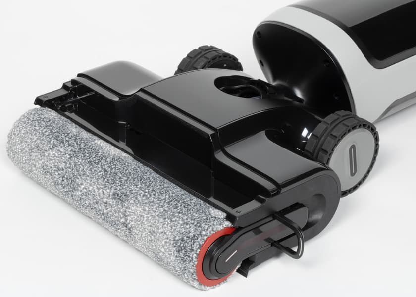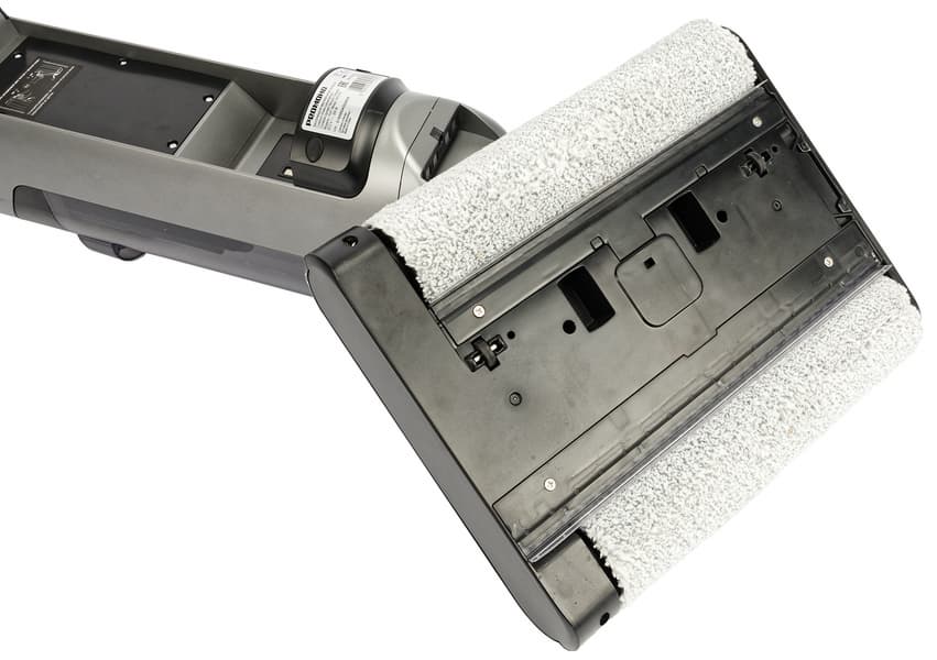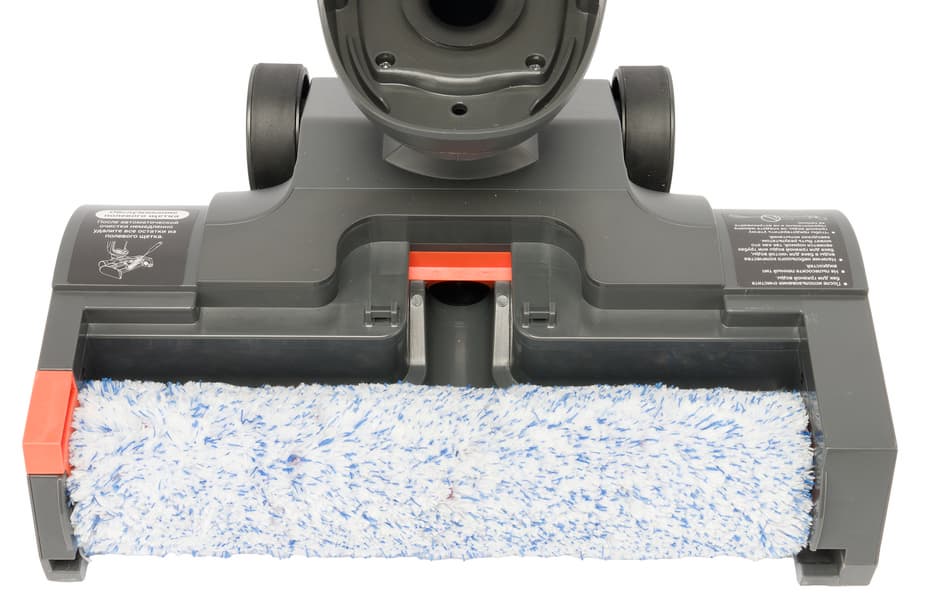 Еще одно важное отличие — два (а не один, как в большинстве моющих пылесосов) моторизованных моющих валика, которые эффективно справляются с загрязнениями, включая застарелые пятна. Степень увлажнения пола на максимальном режиме достаточна, хотя отдельной кнопки для дополнительного распыления воды не предусмотрено.