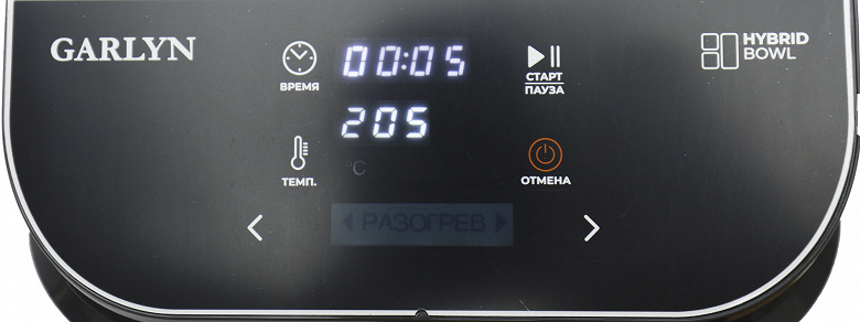 На дисплее можно выбрать одну из 17 программ приготовления, температуру и время, а также установить ручной режим и самостоятельно запрограммировать работу устройства.