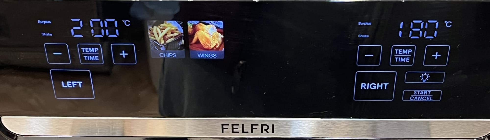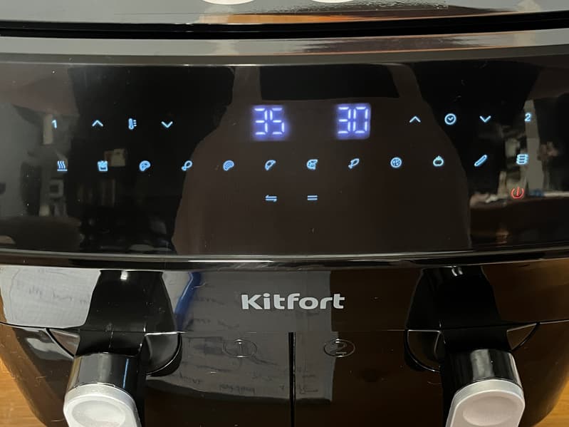 Для каждого отсека они настраиваются отдельно на правой или левой стороне панели управления. Как и в обычных аэрогрилях, количество программ зависит от модели. В Felfri FF-AF-04 их 10, в Kitfort КТ-2250 — 12, в Gressel GAF-1825 — 8. Вне зависимости от них пользовательская программа ручной настройки всегда поможет выбрать нужный температурный режим и время приготовления, поэтому наличие автопрограмм — это хорошо, но опыт приготовления и ориентирования в параметрах для разных продуктов важнее. А для удобства использования важно, русифицирована ли панель управления и насколько информативны пиктограммы, обозначающие авторежимы. А также — можно ли изменять параметры внутри одной программы и можно ли это делать не до начала приготовления, а прямо в процессе без отмены режима. Увы, такое возможно не в каждой модели, и это неудобно: допустим, вы поняли, что хотите добавить время приготовления в одной из корзин, а у вас включена синхронизация программ — в итоге слетят все настройки, и «начинай сначала». Например, в Felfri FF-AF-04 режимы можно отредактировать по температуре и времени и после запуска программы, но если авторежим уже запущен, то сменить его на другой без отмены нельзя.