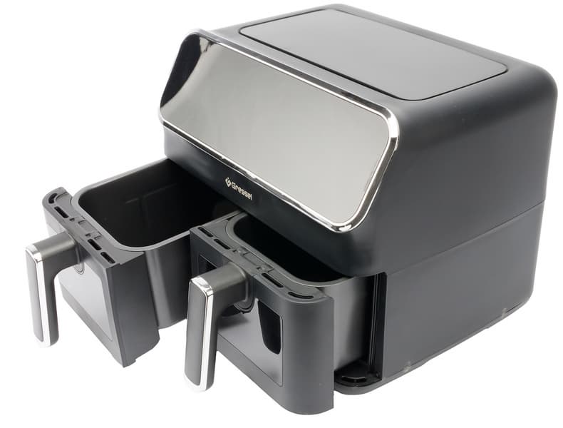 Если обычные аэрогрили имеют корзины объемом от 6–8 и 10–12 л, то корзины в аэрогрилях с двумя чашами — 4–5,5 л, то есть каждая корзина менее вместительна, и это надо учитывать. Так, у Felfri FF-AF-04 объем каждой корзины — 5,5 л, у Gressel GAF-1825 — 4 л, у Kitfort КТ-2250 — 4,5 л.