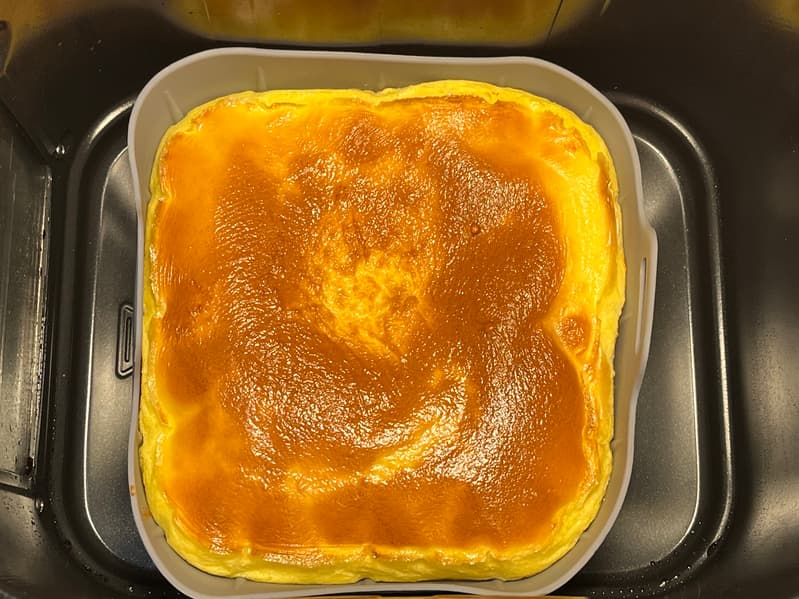 Как и при выборе обычного аэрогриля, нужно обратить внимание на количество и расположение нагревательных элементов. Если они есть только сверху, то и продукты будут быстрее готовиться сверху, а снизу оставаться более бледными, если не сыроватыми несмотря на конвекцию — так показывает наш опыт тестирования многих аэрогрилей. В моделях с верхними тэнами иногда в некоторых программах предусмотрен звуковой сигнал в середине цикла как напоминание о необходимости перемешать или перевернуть продукты в корзине. Как вы понимаете, если приготовление идет в форме — например, омлета или пирога, то перевернуть его нельзя. Оптимально, если тэны есть и сверху, и снизу, как в Felfri FF-AF-04. Кстати, мы готовили в этом аэрогриле омлет в форме — получился отлично.