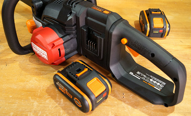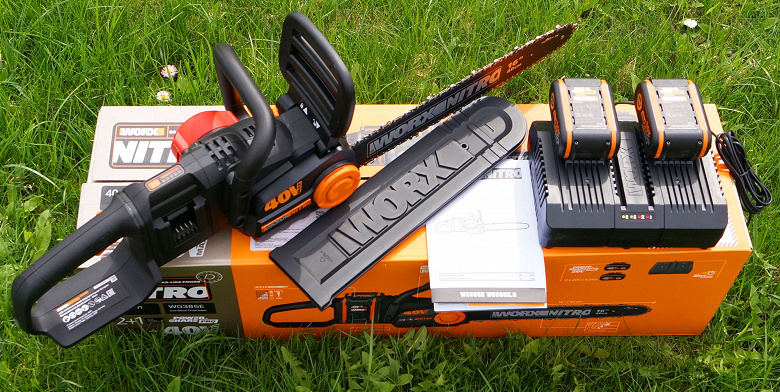 Знакомство с цепной пилой Worx Nitro WG385E позволило отметить следующие положительные качества инструмента: