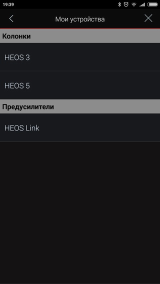 В верхнем левом углу этого окна есть знак шестеренки, который предназначен для вызова меню настроек системы, описанного выше. В нем есть такие пункты как добавление нового устройства, настройки источников звука (в частности сервисов и локальных аудиовходов), учетная запись Heos, обновление ПО и сервисы диагностики. Параметры каждой колонки выбираются через пункт «Мои устройства».