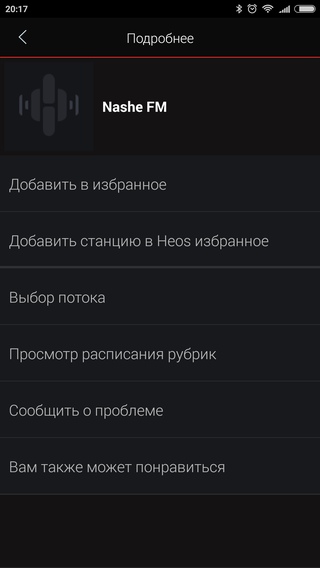 Кроме того, в списке присутствуют пункты пользовательских плейлистов, истории и избранного. Здесь стоит обратить внимание на то, что большинство вариантов, включая трансляции с онлайн-источников, медиасерверов, локальных устройств и входов, не требуют работы утилиты на смартфоне. То есть она может быть выключена и выгружена из памяти мобильного устройства. Правда в этом случае есть риск «потерять управление» и остаться без возможности быстро выключить звук по сети.
