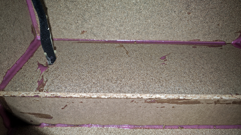 Щелевидное отверстие в нижней части передней панели можно принять за дополнительный резонатор, но его полость отделена от остального пространства корпуса. За выступом внутри скрывается блок питания. Корпус собран добротно, в качестве внешних стенок использована древесноволокнистая плита средней плотности толщиной 10 мм.