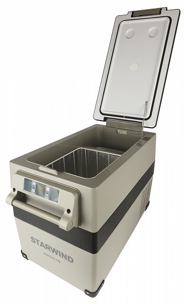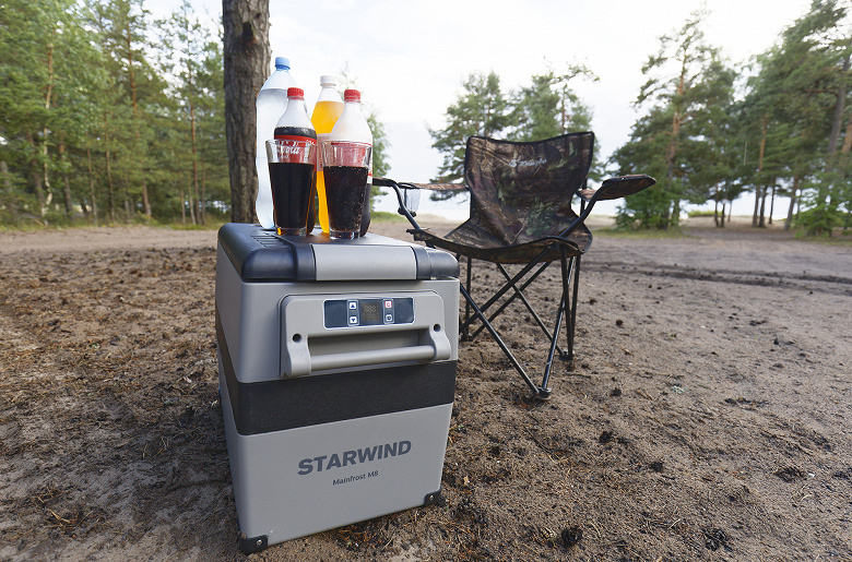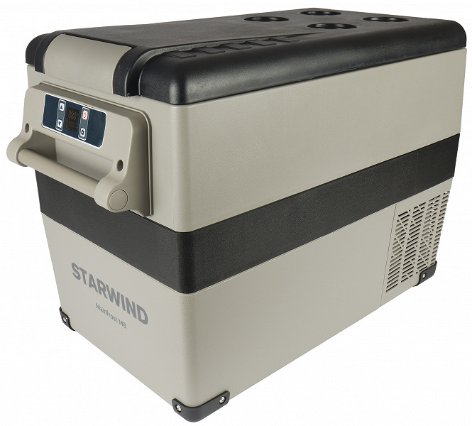 В этот раз мы тестируем компрессорный Starwind Mainfrost M8. Этим устройством можно управлять с мобильника, он работает и от сети 12/24 В, и от домашней на 220 В, оборудован светодиодной подсветкой и может охлаждать продукты до −20 °C.