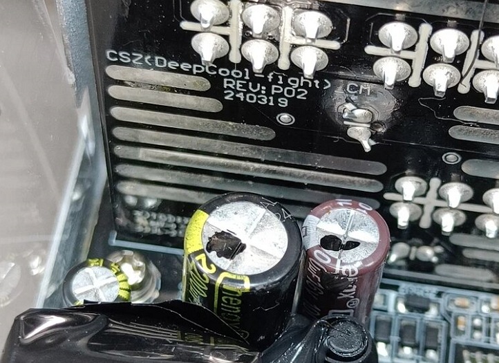 В низковольтной части блока питания установлены конденсаторы ChengX. Входной конденсатор — торговой марки TK (Toshin Kogyo), это японский бренд, имеющий производственные площадки в Японии, Китае и на Тайване.