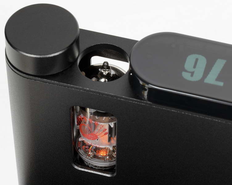 Строгий матовый черный корпус из алюминия, округлые очертания и, конечно, лампа в специально предназначенном для нее окошке — выглядит «цапоусилитель» очень эффектно.