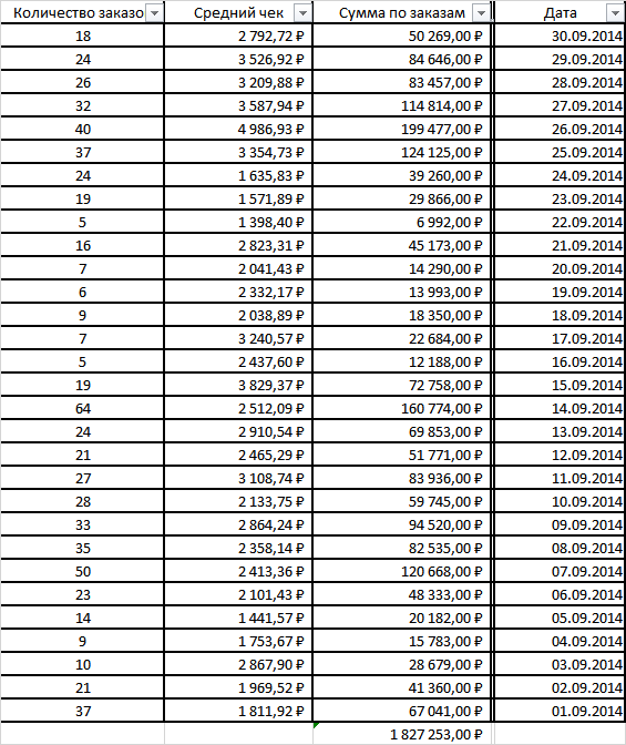 Заказы с сайта в сентябре 2014 года: