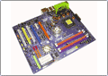 Несмотря на статус high-end продукта, комплектацию платы трудно назвать богатой. В частности, не хватает двух кабелей SerialATA и двух переходников питания (четыре разъема), а также брекета с парой портов USB2.0. Впрочем, в коробке есть специальная 3" панель, которая позволяет вывести на переднюю часть корпуса два порта USB2.0 и порт Firewire (панель соединяется с брекетом, который есть в комплекте).
