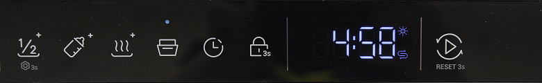 Панель управления здесь фронтальная, наружная, никак не закрытая. К сожалению, нет индикации времени до окончания цикла мытья.