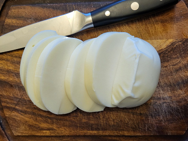 Почему-то мы всегда опробуем грили на кабачках. Наверное, потому что кабачок — овощ нежный и водянистый (если, конечно, не брать те кабачки, которые ваша бабушка вырастила на даче до размеров хорошо откормленного слона). Мы порезали кабачок, постаравшись получить кусочки более-менее одинаковой толщины.