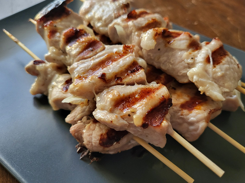 Стоит отметить, что в отличие от шашлыка, приготовленного на углях, этот получился таким… диетическим. Со всеми этими выставлениями режимов мы забыли воспользоваться функцией Sear, поэтому шашлык снова оказался не таким поджаристым, как нам хотелось бы. Или, возможно, мы сделали слишком нежный маринад.
