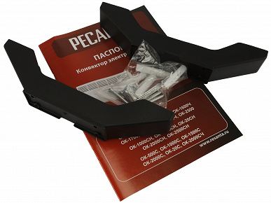 Вскрыв коробку, внутри мы обнаружили сам прибор, инструкцию и набор ножек с крепежными скобами и дюбелями.