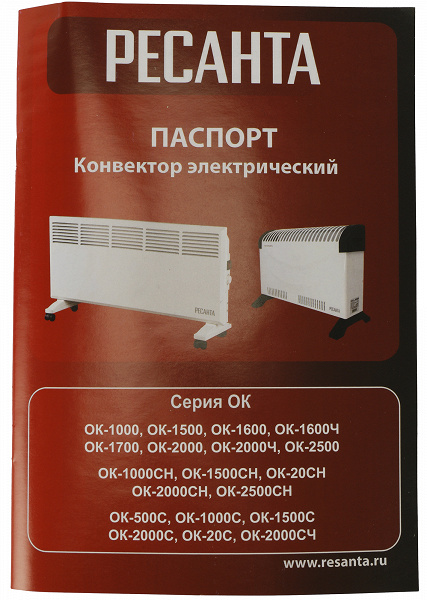 Электрический конвектор Ресанта ОК-1500С: небольшой размер, 3 режима мощности, регулировка температуры