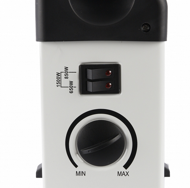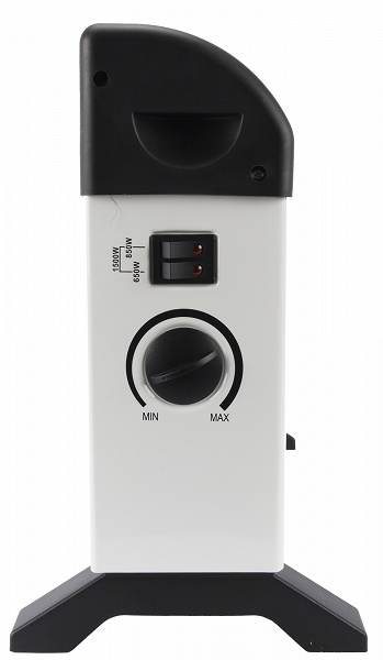 На боковой поверхности конвектора располагаются два переключателя с индикаторами и ручка термостата. Переключатели служат для выбора мощности. Возможно три уровня — 650 Вт, 850 Вт, 650+850 Вт.