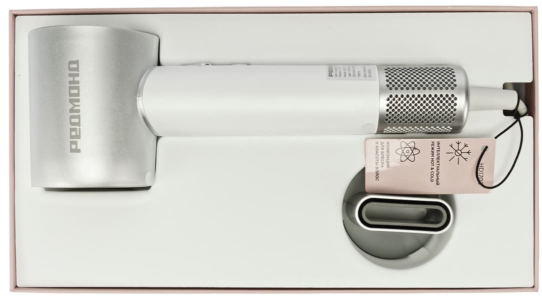 Фен компактен, сборка качественная, дизайн выше всяких похвал, корпус немаркий. Расположение кнопок управления удобное: кнопки не срабатывают при случайном касании. Фен обеспечивает антистатический эффект благодаря ионизации, имеет гибкую настройку режимов и интуитивно понятное управление с цветовой индикацией температурных режимов.