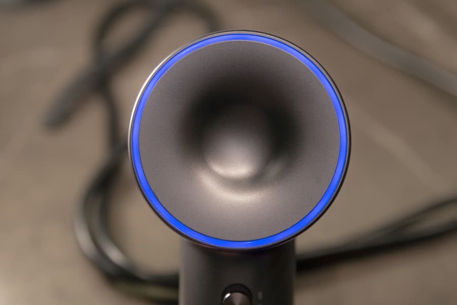 Dyson использует безлопастную технологию Air Multiplier для усиления воздушного потока. В ручке фена находится небольшая мощная турбина. Она засасывает воздух через отверстия в основании, разгоняет этот воздух и направляет его в специальный канал внутри кольца. Воздух выходит наружу через узкую щель по периметру этого кольца. Форма щели и канала таковы, что поток выходит с очень высокой скоростью, при этом захватывая и вовлекая в движение воздух, который находится рядом с устройством. В результате на выходе получается мощный, непрерывный и равномерный воздушный поток. Кроме того компания применяет систему контроля температуры с датчиками, измеряющими ее до 40 раз в секунду.