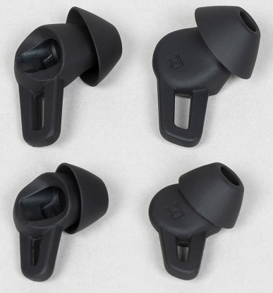 Насадки удерживаются крупным выступом в основании звуковода. Снять и поставить на место их при этом не очень сложно. Сам звуковод стал короче, на боковой поверхности появилось дополнительное отверстие — видимо, оно является частью анонсированной производителем «конструкции с четырьмя звукопроводящими трубками», призванной сделать звучание гарнитуры более качественным.
