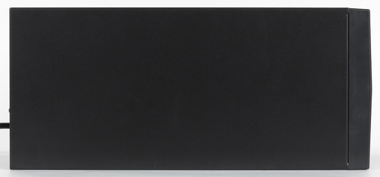 Боковые стороны Powercom Macan MAS-3000 имеют перфорацию, которая необходима для вывода теплого воздуха из корпуса устройства. Вентиляторы охлаждения размещены за лицевой панелью справа. Стоит отметить, что охлаждают они только одну часть ИБП.