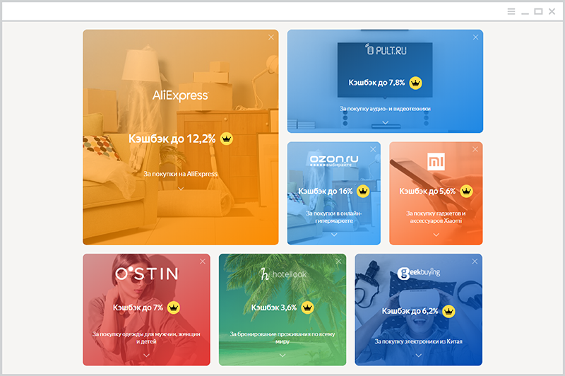 1. Заходите в раздел «Скидки и бонусы», вкладка — «С кэшбэком» (все предложения в этой категории помечены «короной»).