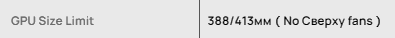 | Максимальная длина видеокарты | 388 мм (413 мм в отсутствие верхних вентиляторов) |