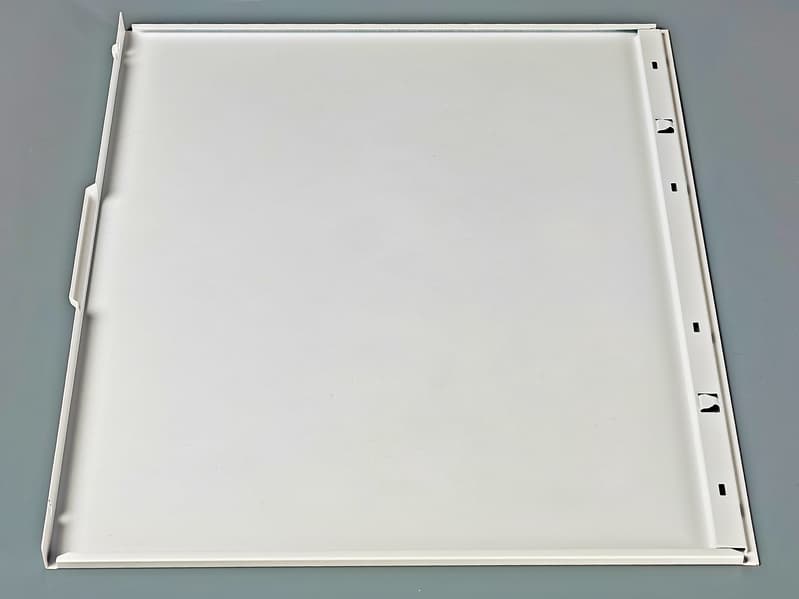 Вентиляционные отверстия на верхней панели корпуса закрыты фильтром из листа гибкого пластика с мелкими круглыми отверстиями, который с помощью закрепленных по периметру магнитных полос крепится снаружи к металлу соответствующей поверхности. Он является самым удобным для обслуживания.