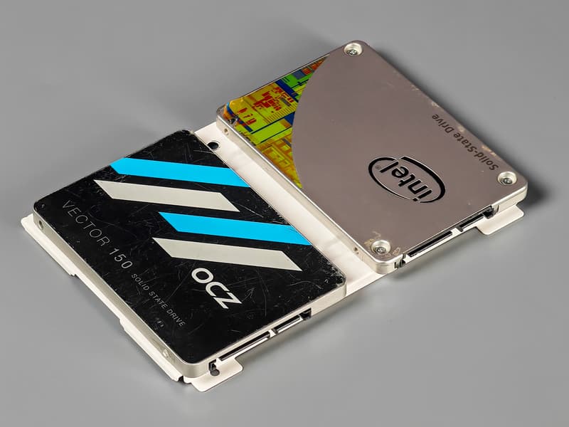 В официальном описании говорится о двух дисках размером 3,5 дюйма, но в реальности дело обстоит немного иначе: один такой накопитель может быть установлен внутри корзины, а снаружи сверху можно разместить второй любой из двух размерностей — в верхней крышке корзины имеются соответствующие отверстия, через которые накопители крепятся имеющимися в комплекте винтами.