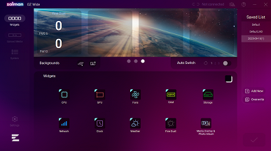 Вывод информации осуществляется под управлением утилиты Zalman OZ Wide, в ней имеются и различные настройки. Инсталлятор нужно скачивать с сайта компании (его «вес» 195 МБ), во время тестирования была доступна версия 2.0.0, в памяти занимает около 170 МБ.