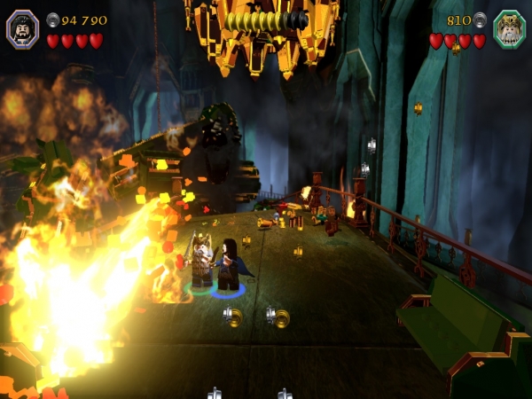 Если не играли в LEGO-проекты ранее, готовьтесь к некоторым условностям. Во-первых, сочетание объектов из кубиков и обычных текстур может вызывать диссонанс: из элементов конструктора выполнены далеко не все объекты. Будем считать это дизайнерским приемом. Как ни странно, сознание быстро адаптируется к новой реальности, и одинаковый рост, скажем, Гендальфа и Бильбо не вызывает особого возмущения. Во-вторых, здесь приходится много чего ломать и крушить. Внутри ящиков, комодов, гор строительных элементов скрыто множество наград и ценных предметов, мимо которых не хочется проходить. Игра только сильнее раззадоривает: смотришь на шкалу набранных баллов — и не можешь устоять перед желанием довести рейтинг до ста процентов.