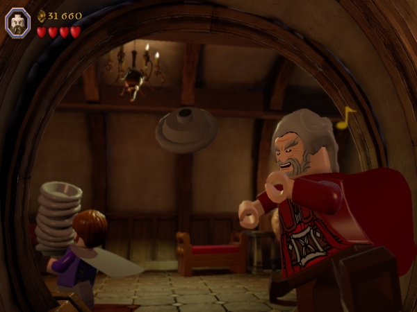 В остальном LEGO The Hobbit предлагает скудный набор развлечений. Игровой процесс состоит из беганья, прыганья и решения легких, но не всегда очевидных головоломок, а также создания предметов. Нередко мы вынуждены все вверх дном перевернуть, чтобы найти недостающий брусок дерева или веревки. Впрочем, если не пропускать сундуки с разрушаемыми объектами и оставлять после себя лишь разлетевшиеся в разные стороны кубики, сбор ингредиентов для создания вещицы не вызовет сложностей. Порой мы добираем элементы простой мини-игрой, в которой нужно быстро подставить искомую деталь.