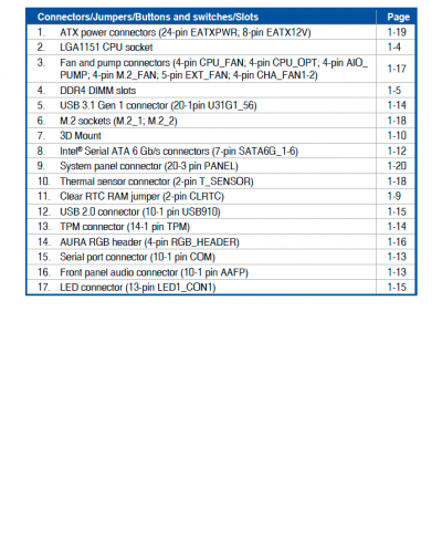 | Внутренние разъёмы на системной плате | 24-контактный разъём питания EATX; 8-контактный разъём питания ATX 12 В; 6 SATA 3; 2 M.2; разъём M.2_FAN; 4 4-pin разъёма для корпусных/процессорных вентиляторов с поддержкой PWM; 4-pin разъём AIO_PUMP для помп СЖО с поддержкой PWM; High AMP разъём для вентилятора; разъём EXT_FAN; разъём RGB; разъём USB 3.1 Gen1 для подключения двух портов; разъём USB 2.0 для подключения двух портов; разъём для термодатчика; коннектор TPM; коннектор COM-порта; перемычка Clear CMOS; два порта 3D Mount screw; группа разъёмов AAFP для передней панели; группа разъёмов для передней панели |