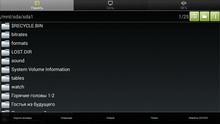 Помимо этого стандартного проводника, в рассматриваемом плеере имеется предустановленная оболочка XBMC — программное обеспечение для организации HTPC (Home Theatre Personal Computer) с открытым исходным кодом, теперь этот проект называется Kodi. Подробно об XBMC «поверх» Android было рассказано в статье Медиаплеер 3Q Appy AA2390E.