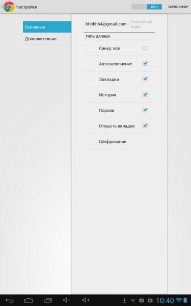 Chrome для Android предлагает полную синхронизацию между устройствами: можно получать доступ к своим закладкам, к истории посещенных страниц, к данным об автозаполнении форм, к сохраненным в браузере паролям. Кроме этого, если Chrome открыт сразу на нескольких устройствах, он может передавать информацию об открытых вкладках.