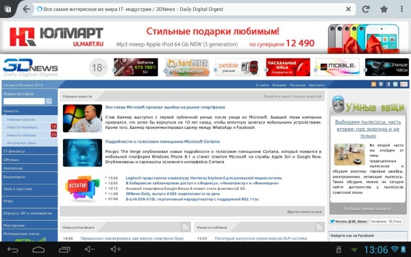 Что же касается Opera, то ее рыночная доля пока что держится за счет старых версий Opera Mini, которые были установлены на устройствах еще до смены направления развития компании. Текущая же версия браузера для Android откровенно слабее конкурентов и уступает им как по функциональности, так и по стабильности работы. Например, загрузить стартовую страницу нашего сайта в Opera для Android нам так и не удалось.
