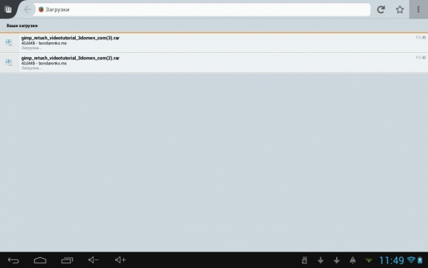 Как ни странно, но менеджера загрузок в Chrome для Android нет. При попытке закачать файл программа предлагает выбрать приложение, через которое его нужно скачать. Если выбрать Chrome, информация о ходе загрузки будет отображаться на панели уведомлений. Интерфейса для просмотра загруженных файлов и управления ими в браузере пока что нет (в единственном, кстати, из тройки рассматриваемых приложений).
