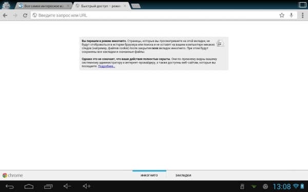 Некоторые различия между «большим» и «маленьким» Хромом касаются навигации. Жест перемещения (swipe) вправо или влево в области адресной строки дает возможность перемещаться между открытыми вкладками, а оттягивание поля для ввода вниз приводит к отображению всех открытых вкладок. А еще в версии для Android можно быстро включать полноэкранный режим, просто прокрутив страницу вниз. При этом исчезают вкладки, элементы навигации, и содержимое страницы занимает максимум пространства.