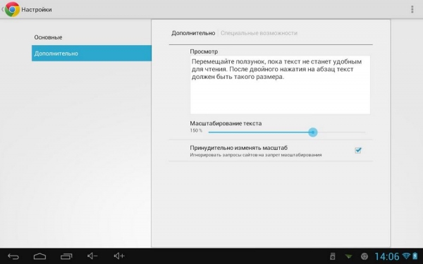 Когда-то масштабирование текста на веб-страницах было одной из особенностей браузеров Opera. В новой Opera для Android этой функции нет, но зато Google позаботился о том, чтобы пользователям Chrome было удобнее читать с небольших экранов. В настройках браузера можно определить комфортный размер текста, и эта функция будет задействоваться даже для тех сайтов, которые запрещают изменять масштаб.
