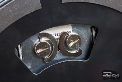 Для того чтобы сэкономить место внутри упаковки и более эффективно использовать пространство, разработчики разделили конструкцию на две части: основание опоры и экранную панель с присоединенной опорой. Собрать монитор можно без инструментов: достаточно просто вставить выступающие части одной детали в соответствующие пазы другой и затянуть два невыпадающих винта.