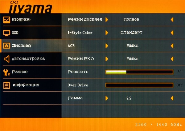 Как обычно, все предустановки изображения представляют собой готовые сочетания яркости, контрастности, оттенка, показателя гамма-кривой, а также цветовой температуры. Причем внутри каждого пресета можно регулировать все доступные параметры — и эти настройки сохраняются даже после переключения в другие режимы. По причине доступности регулировок всех возможных показателей, а также отсутствия влияния каких-либо установок, режим «Стандарт» на данный момент становится основным претендентом на звание пользовательского.