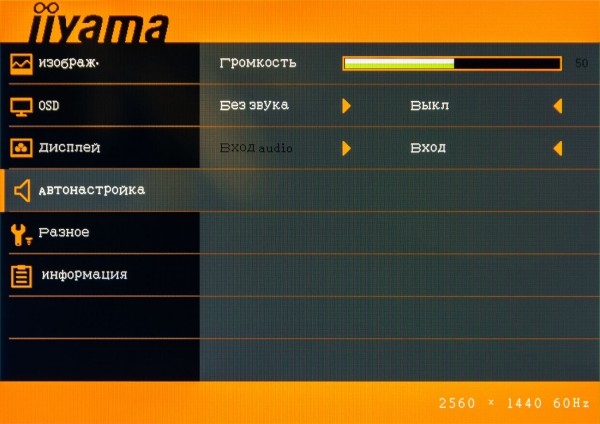 Следующее подменю, несмотря на интригующее название «Автонастройка», позволяет отрегулировать все параметры, связанные с воспроизведением звука. В частности, здесь можно задать громкость сигнала, выбрать режим «без звука», а также настроить вход для аудиопотока.